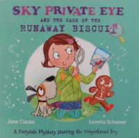 Sky Private Eye has another case to solve when she answers the call of the Little Old Man who reports anxiously, “Our Gingerbread Boy is missing!” Before you can say ‘biscuit’, Sky and her trusty companion, Snuffle are off on the scooter to the source of the call. There they learn that gingerbread lover, Foxy Loxy is in the vicinity and are given permission to search the Boy’s bedroom. It’s there Snuffle discovers a crucial clue concerning new running shoes, which Sky immediately links to the forthcoming Fairytale Olympics.