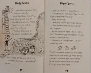 With an abundance of daftness, this foray into the world of cattle farming is full of action, a bit of guitar strumming and Francesca Gambatesa’s fun colour illustrations. It’s just right for those ready for first fiction books.