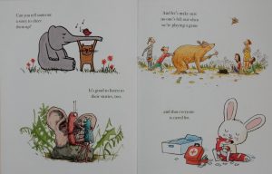 Brown lets his illustrations do much of the talking. The ‘be yourself’ message comes through loud and clear from the pictures whereas he keeps the verbal content understated and to the point.