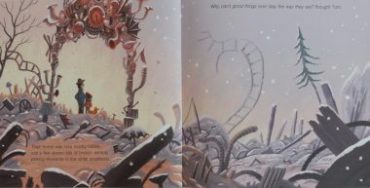 Inspired by Thyra Heder’s own Arctic visit, this truly impressive book really does, in comparatively few well-chosen words and stunning watercolour scenes in icy blue, grey and green shades shades, paint a breathtaking world while at the same time one hopes, sparking the imagination and engendering a fascination for wild places with their amazing flora and fauna. A delight through and through.