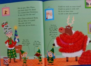 Things go pretty well to start with but then boredom kicks in and Ruby starts getting ideas: ideas that result in mayhem at house after house and a very stressed Santa, so stressed in fact that on his return, he discovers he’s missed out one of the house.. Time for Mrs Claus to spring into action, but where is Ruby?