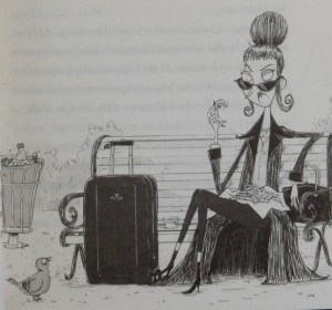 This helpful female introduces herself as Rinki. She’s dressed in what Blanche terms a ‘spectacular’ outfit comprising largely, Christmassy bits and pieces she’s picked up on the London streets, and proceeds to invite Blanche to a mince-pie picnic.