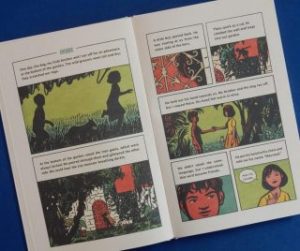 followed by a scary moment with snakes. To compensate for that though, a troop of monkeys crowns him king, he helps a super-sleek leopard and becomes its friend and finally, he flies with a bird. As he excitedly informs his parent of each event the child receives merely the response, ‘That’s nice, love.’