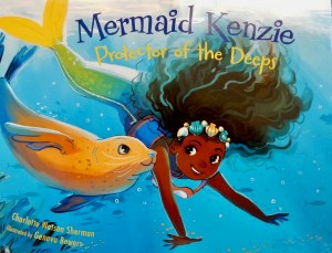 Mermaid Kenzie loves to don her mermaid tail when they take their boat out and sometimes wearing her mask and snorkel, she dives beneath the waves playing with her seal pal named Cocoa. On one occasion, she’s horrified to discover the plastic bags causing pollution to the ocean’s ecosystem.