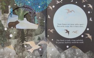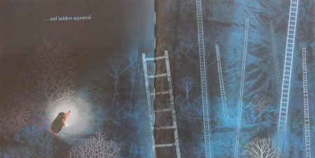 This is a magical modern fairy tale of friendship, hardships and difficult decisions. It is wondrously illustrated in shades of blue, white and grey. Baker-Smith’s snow is truly brilliant; he achieves dazzling effects without a single touch of added glitter and his small framed scenes of the potential human tragedy and the dilemma inherent in the boys’ friendship, set into the snowy landscapes, are a stark contrast to the beauty of the landscapes surrounding them. Hauntingly memorable; a book for all ages and one to return to again and again.