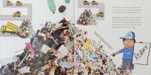 be that of the deserts, mountains, valleys or wherever they find themselves. Each of the environments – a tropical forest with a river flowing through, the (melting) polar ice, the sandy desert, the smoky city and more – is depicted in Sally Soweol Han’s soft pastel and coloured pencil scenes, each of which shows how we can all, like the children depicted, look after our precious planet. Only that way can the young have the rich futures they hope for and deserve.
