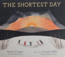 This is a somewhat surreal, enigmatic, rhyming bedtime book wherein Carson Ellis presents a moonlit room in which everything is carefully cut in half. We don’t see the entire setting initially; rather we’re shown a series of partial items – ‘Half chair/ Half hat / Two shoes, / each half / Half table / Half cat’.