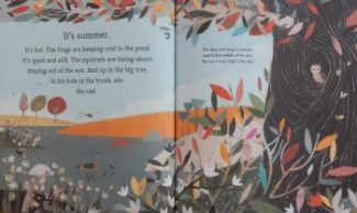 The little girl narrator visits her beloved grandmother through the different seasons of the year. Together they savour the joys of the tangly weeds or ‘wild flowers’ as Nana insists; harvest the bounties of fruit trees and wonder at the wealth of minibeasts and small animals that find their way among the jungle of brightly coloured flora.