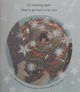 Come winter it’s clear that like her garden, Nana is fading, letting go her hold on life and by the time her garden is clad in snow, only a robin sits on her chair. (A nod to John Burningham by Jessica perhaps there.)