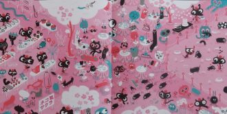 Alea Marley’s bold, richly hued scenes have a tropical setting, with both daytime and evening activities being shown, some of which include the entire family, whereas in others we see just the two sisters.