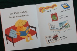 The young canine narrator of this story has a particular liking for trains – playing with toy ones, reading about his passion,