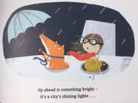 and is nicely balanced by Daniel Rieley’s alluring, unfussy illustrations that starkly remind us of the way our streets are vehicle dominated. Happily however, come the new day, the walk shows greener alternatives to the pollution-spewing cars as we see an electric bus, cyclists and other eco-friendly modes of transport.