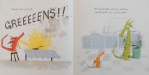Fergal the dragon is a pleasant, friendly enough little fellow when he’s getting his own way, but he’s a hot-tempered creature when things aren’t quite to his liking. That’s when his fieriness gets the upper hand; like the occasion when he’s told by dad to eat all his veggies or forego his pudding. Guess who stays hungry that teatime …
