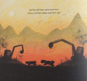 Eventually Asha finds herself completely alone, save for the scent of humans. Yes, humans had come into the forest, bringing with them huge destructive machines that cut down all the trees.