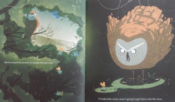 A joyful spin off from the favourite nursery game ‘Everybody Do This’ populated by adorably playful animals, a hairy, sluggy-looking quadruped, and one small girl, that simply cries out to be joined in with. There are instructions to ‘suck your thumbs’; ‘rub your tums’; ‘lick your lips’;