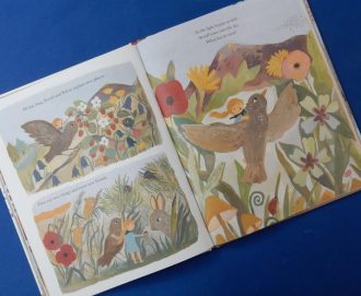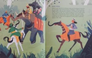 With minute attention to detail, Naomi Howarth’s outstandingly beautiful illustrations (a combination of lithography and watercolour), executed in exquisite jewel colours on every page, underline the inherent mind over might, and the importance of friendship messages of the traditional tale.