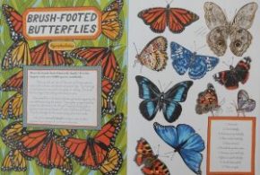 I didn’t need any persuasion to love elephants mainly because of frequent encounters with the Asian variety on my numerous visits to India. (I’ve never seen any with googly eyes however.) In addition to the reason that gives each spread its title, there is plenty more to enjoy. I was fascinated to learn that elephants ‘wrap their trucks around each other in warm greetings’ and that ‘they understand how other elephants feel.’ Here for example one can see a beautiful Indian swallowtail butterfly, a common rose butterfly and a common bluebottle butterfly among the flora.