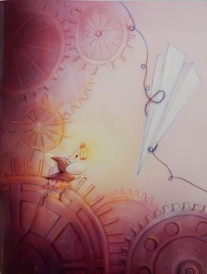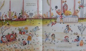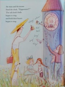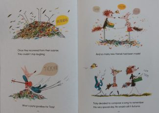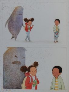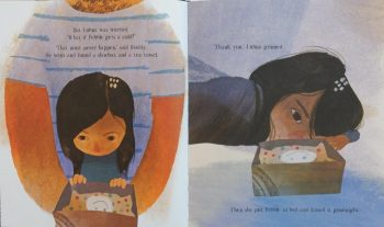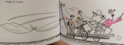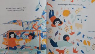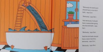 Sally Rippin’s gorgeous illustrations took me right into the nursery classroom where I taught for a number of years, as did the ‘special box’ in the narrative. We too had a similar item not pink but battered and brown with a hole cut in the top, into which I’d put various items and we’d all sit around it and sing, “What’s in the box, what’s in the box, let’s think, let’s see … what’s in the box” before somebody would put in their hand and extract an item as the starting point for storying.