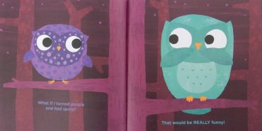 Owls Baz and Benz are best friends: Baz is small and blue; Benz is big and green.