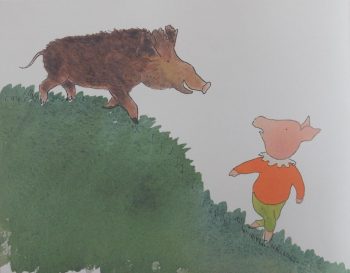 Be sure to take time over the interaction between the two seated adults; there’s much to wonder about there too,