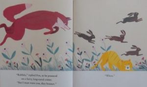 so he too joins the hunt – as passenger carrier – and off they all go following a sweet-smelling scent, eventually coming upon a fantastic feast laid out in a field.