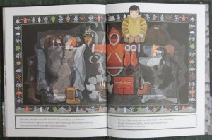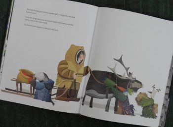Rooted in a northern folk tale, this is a story of hope and kindness about the origins of Father Christmas. It tells of some nomadic people (Sami perhaps) living in the far north. The adults mostly forage and hunt while the children’s role (alongside playing) is to tend the deer.