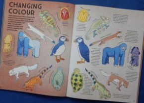 The ‘Mighty Melanin’ spread is especially rich in detail explaining how this pigment is contained within tiny melanosomes that can be preserved in fossil feathers, scales and skin, thus offering information on the original colours. However every single spread offers plenty of food for thought: What would mutant dinosaurs have looked like? Would a dinosaur living in a snowy region have been super-white?