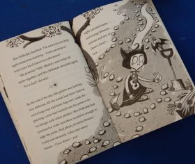 This allows them to overhear a conversation about a wooden box hidden by an old king the contents of which will make their master the most powerful person in the entire kingdom. They must be working for Sir Scallion surely? But an untimely sneeze results in the three being discovered and they have to dash for their unicorn, stopping briefly to rescue a tiny ice dragon. Whither now? Goldie has an idea and they soon find themselves in a mysterious library. I’ll leave them there and merely say ‘Rumpelstiltskin’ and recommend you get a copy of the book and find out how the magical tale ends.
