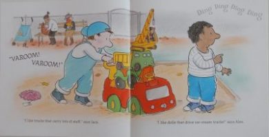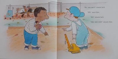 The children disperse and begin finding other things to do and other children to play with. No so Jake though; he stays near to home and can’t stop his mind wandering back to his special friends and the exciting things they’d done together. Eventually he returns to the tree but he’s not the only one who has done so. Lily too has drifted back and, after apologising to one another, little by little a fresh understanding and friendship develops.. Finally, joy of joys, there’s a new treehouse that, as the title says, is for everyone.