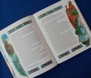 We start with the opening lines of the favourite song and then it’s the action off the bus rather than on it that is the focus of attention, for the bus (sporting its zebra stripes) is heading for a wildlife park. Therein we and the passengers can see (and join in the action of) springing gazelles, singing, ringing birds in the trees, howling, yowling wolf cubs, tumbling, bouncing, baboons, splashing pouncing otters, mud-loving hippos wallowing and rolling, dashing leaping cheetahs, trot trotting llamas, slow moving sloths beaming in the trees and last of all as the sun goes down, leaping lemurs … as the wheels of the bus just keep on turning all day long. Despite the sleepy looking passengers on the final spread, the whole emphasis is on movement and sound; both of which young audiences will delight in joining in with.