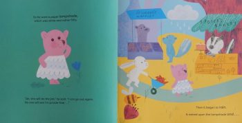 The young narrator and his Grandad loved going to their favourite place. They’d make their way through Wonky Woods, , stop briefly to wave to people on passing trains and to chat with spotty dogs, then climb over the stile when ‘Silly old Grandad’ would always say, “Careful you don’t hit your head on the sky.” Eventually they would arrive at the a place called Pebble Beach and here they’d spend the best of times together. The narrator recalls seeing a seal, playing pirates, eating ice cream while fending off marauding gulls and on every visit before leaving they’d each pick a pebble,