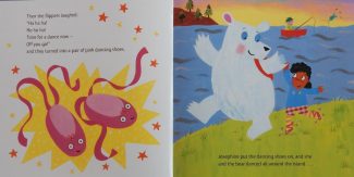 As one would expect from Julia Donaldson, the rhyming text reads aloud beautifully but this adult reader and some children among my audiences were rather brought up short by Sugarlump’s last request, “I wish I had never been born!” It proved a good talking point afterwards though.