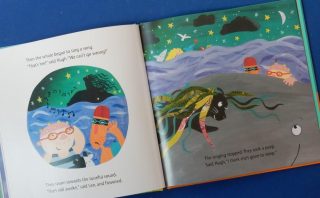 and offers him help. It turns out that the little penguin has travelled in completely the wrong direction – north instead of south. Months pass and then a tern, surprised at seeing a penguin in that location, agrees to guide Jonty to his desired destination. And so, ‘the bird in the sea and the bird in the air’ travel together southwards, at one point aboard a boat all the way to …