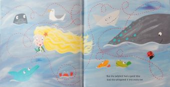 With the combination of Julia’s faultless rhyming narrative and Lydia’s sparkle-scattered scenes of the sea and its swimmers, this is another adventure of our silent Ladybird that’s sure to make a terrific SPLASH with both young listeners and adult readers aloud.
