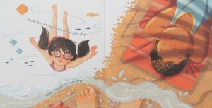 Through two young children, we share in their everyday highlights such as ‘chocolate pudding pie day’s’, ‘Kites up in the sky days. Jumping super high days’; the joys of swimming and sunbathing;