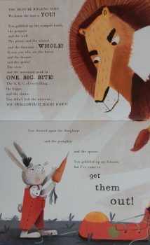 This is one of those books that is sure to have young listeners yelling, “it’s behind you” as the story progresses and the totally oblivious little penguin almost ends up becoming the next meal for a polar bear, rather than the other way round. Children will love being in the know with the author in this tongue-in-cheek tale, the drama of which is captured with aplomb in Nicola Kinnear’s story-telling sequences.