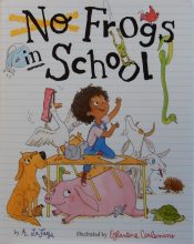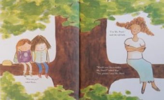 Hannah, the chief protagonist of this story has my sympathies; she’s afraid of dogs, even well behaved ones like Sugar who belongs to her pal, Violet P. This is somewhat unsettling as every day, come rain or shine, Sugar waits for Violet P. after school at the same bus stop Hannah’s dad waits for her. Her other school friends eagerly pet Sugar but Hannah is steadfast in her refusals as she clutches her dad’s hand proffering her polite “No, thank you,” each time.