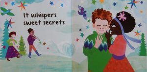 Coming from all over the world, each one of the talented artists has created an equally special, very different scene, thus making every turn of the page a verbal and a visual delight.