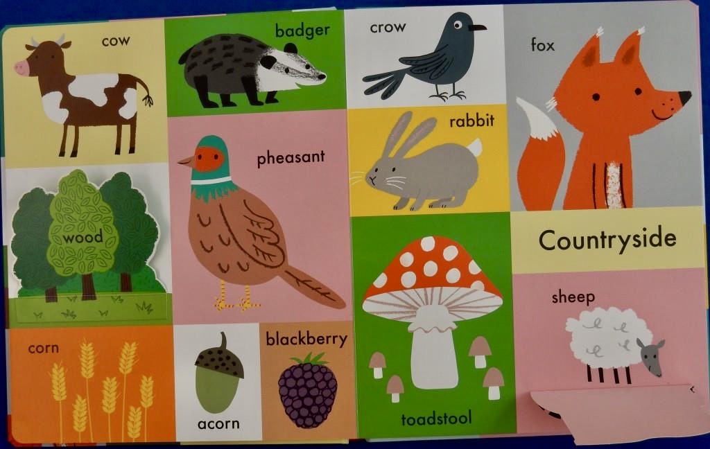 In the same series as 100 First Words and 100 First Words: City, this large format board book has two large flaps to explore on each double spread.The first has a Garden theme, the second shows Seaside themed objects large and small; in the third little ones visit the Countryside,