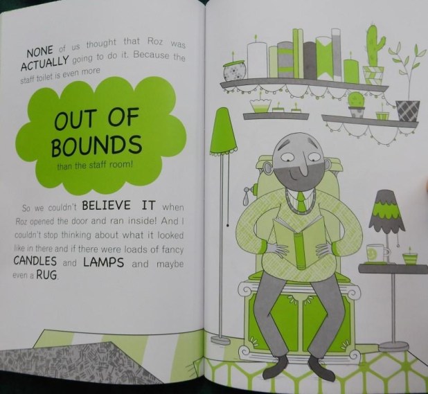 In the second story there’s a new girl in the class. Individuals take turns to show her parts of the school, including some that are strictly out of bounds.