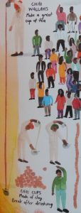 Debut illustrator Saffa Khan has created exquisite ink textured, digitally rendered scenes in rich, vibrant hues for every spread. I particularly like her carefully considered, inclusive one for ‘Inshallah you travel / to thrilling new places.’
