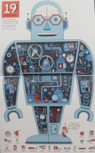Few of any age will be able to resist the delicious picnic spread out along the banks of a meandering river (number 10,) or the 19 robot with all manner of inappropriate items left inside by its absent-minded boffin constructor.