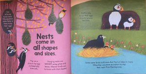 Each double spread has a new focus: there are shapes, minibeasts, sounds,