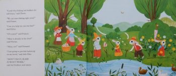 With its direct telling the story has a folk-tale feel about it and Dubois’ illustrations are a blend of vintage and modern elements and show the rural setting and the collaborative tower-building process. Hmmm! You can almost smell the aroma of bread baking as you read the book.