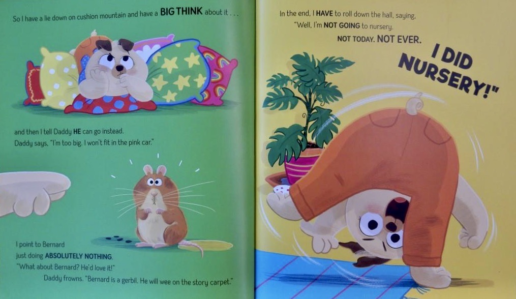 However, come Tuesday, Ruby has other plans that keep her more than a tad busy. Daddy is not impressed, especially when the young narrator suggests sending little brother Alby in her place and even less so when she suggests if he won’t do, perhaps Bernard (the pet gerbil) might stand in.