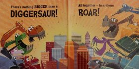 The CRUNCH CRUNCH sounds she hears coming from downstairs aren’t as she first thinks, a crocodile consuming the kitchen table; rather it’s Squeak, her younger sibling, enthusiastically munching breakfast cereal. And so it goes on with some gentle noises of preparations for school and some not so gentle …