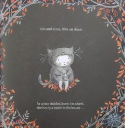 It’s a somewhat tearful Ollie who heads back, suddenly realising that her very own Pumpkin has been left alone. Feeling sadder still, she sits in the dark, lost and a bit fearful, till all of a sudden, she hears a rustle,