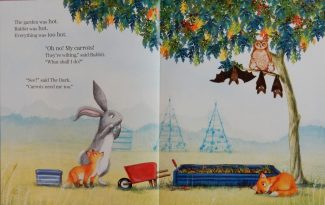 There’s a definite autumnal feel to this book portraying the loving bond between a mother hedgehog and her son Hoglet but despite the little hedgehog’s occasional shivers as the two creatures wander home through the woods, this is a warm-hearted tale.