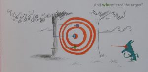 If you’ve read Tallec’s A Better Best Friend, you will already be familiar with best friends Squirrel (the narrator) and talking mushroom Pock. One of the things they love to do is to sit and watch the birds flashing past but on this particular day. having grown tired of so doing, they’ve moved on to the meadow to listen to their favourite bird, the blackbird. However, after searching carefully, eventually they spot it lying motionless on the path; perhaps it’s deeply asleep. After waiting quietly for some time for it to wake up. they decide to try being noisy but this has no effect so they fetch Gunther the mouse. Gunther’s idea of launching the bird into the sky doesn’t work and that’s when Pock suggests that perhaps it’s dead.