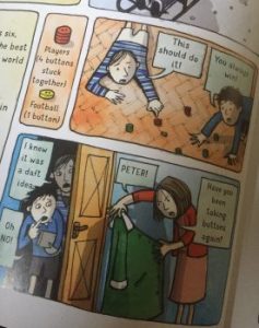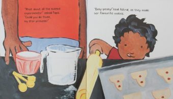In Helping, Dad is busy baking a cake so the boys decide to make some decorations. You are going to love Mouse’s final remark on their endeavours.